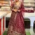 A beautifully embroidered maroon lehenga with intricate gold sequins, perfect for weddings and special occasions. The set includes a blouse, lehenga skirt, and matching dupatta.