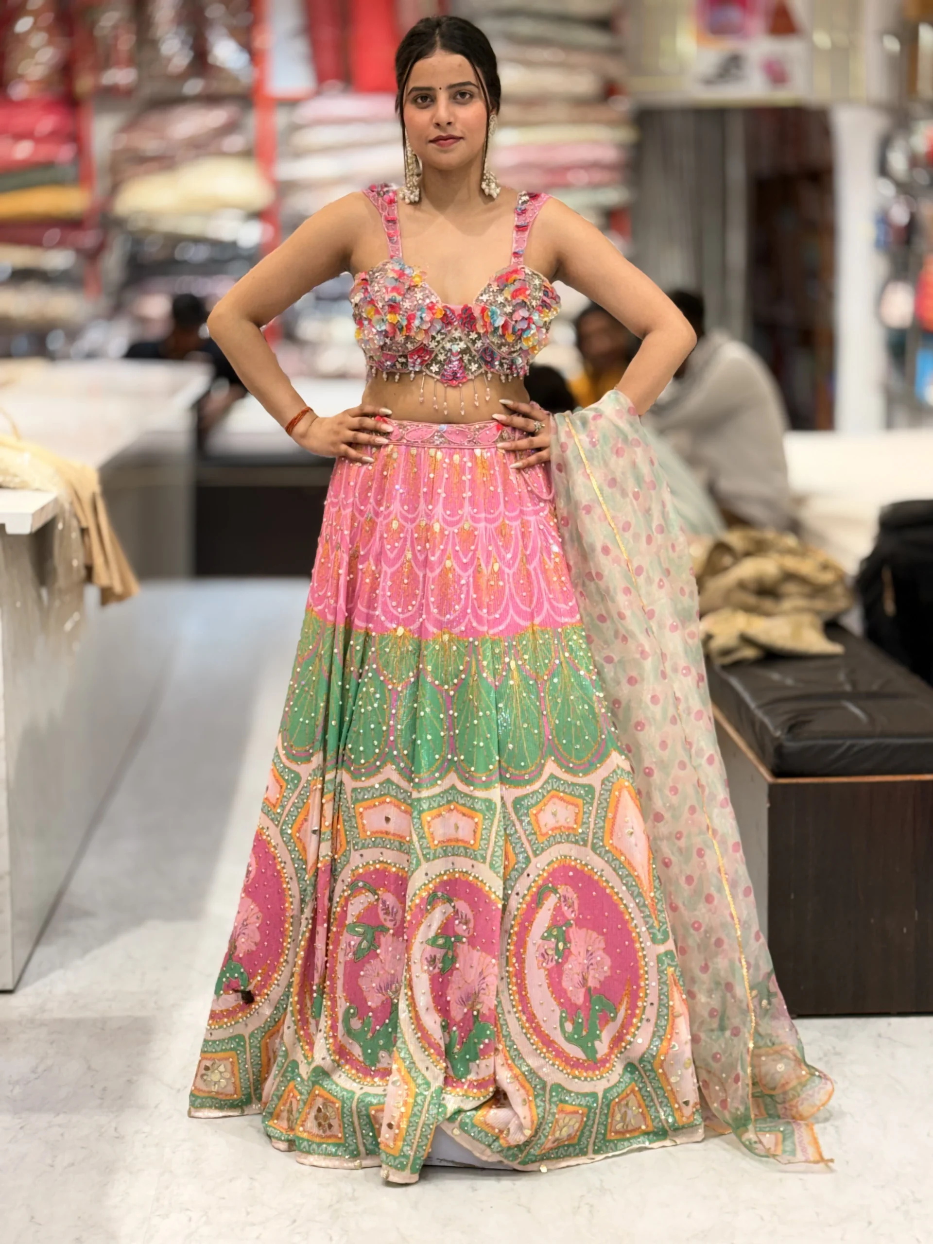 Perfect for weddings, festive celebrations, receptions, and grand occasions, this lehenga choli blends classic craftsmanship with vibrant modern flair to ensure you stand out with confidence and grace