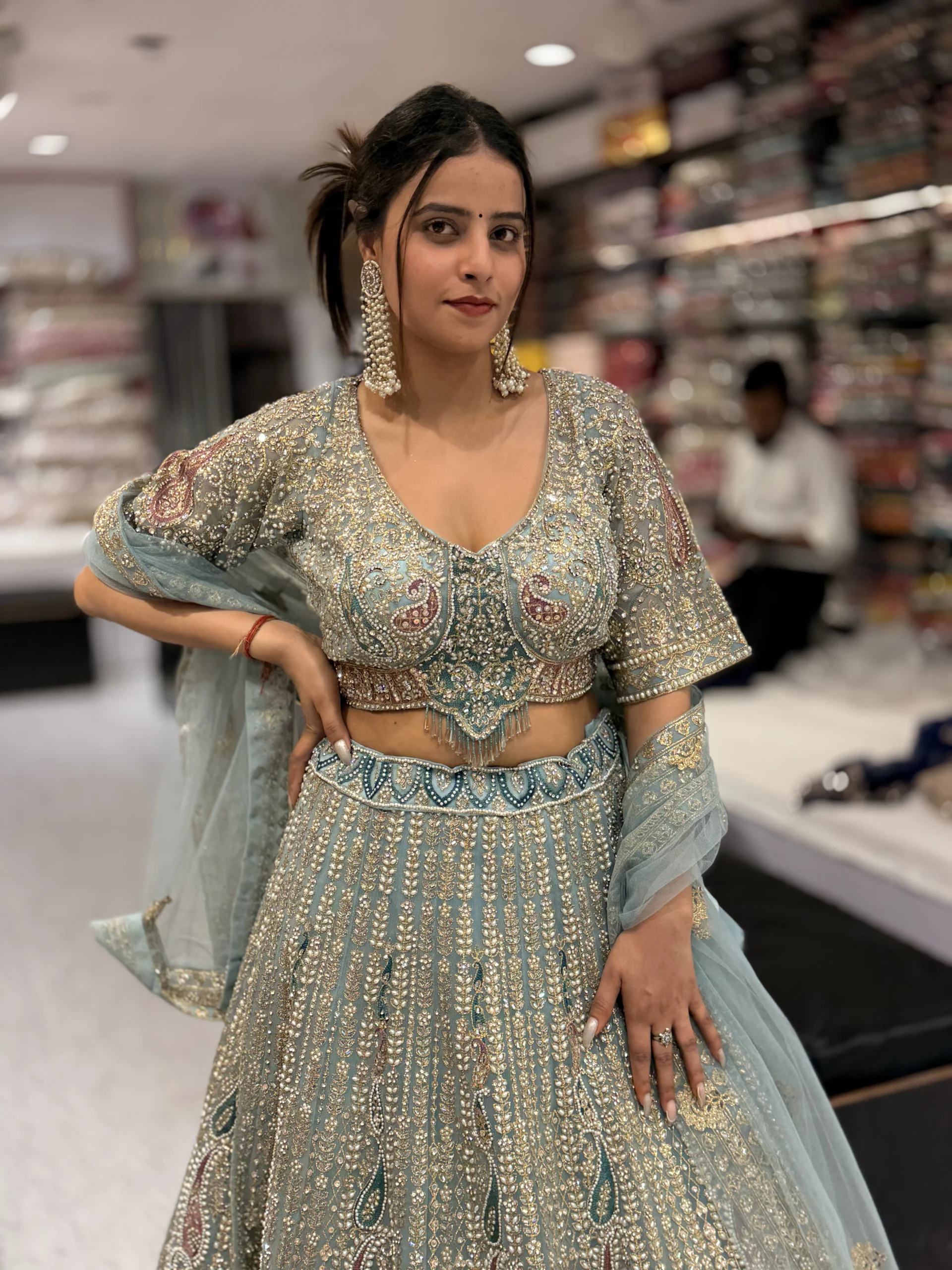 Our festive lehenga collection celebrates color, craftsmanship, and joyful elegance. Each piece is thoughtfully designed with detailed embellishments and vibrant tones to ensure you look radiant and celebration-ready at every special event.